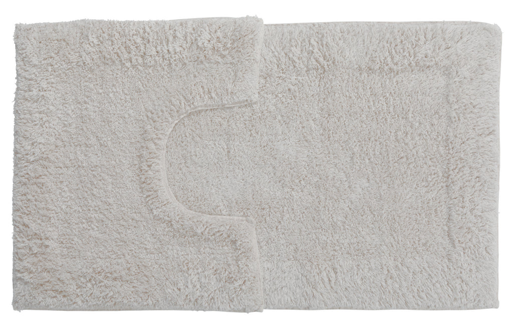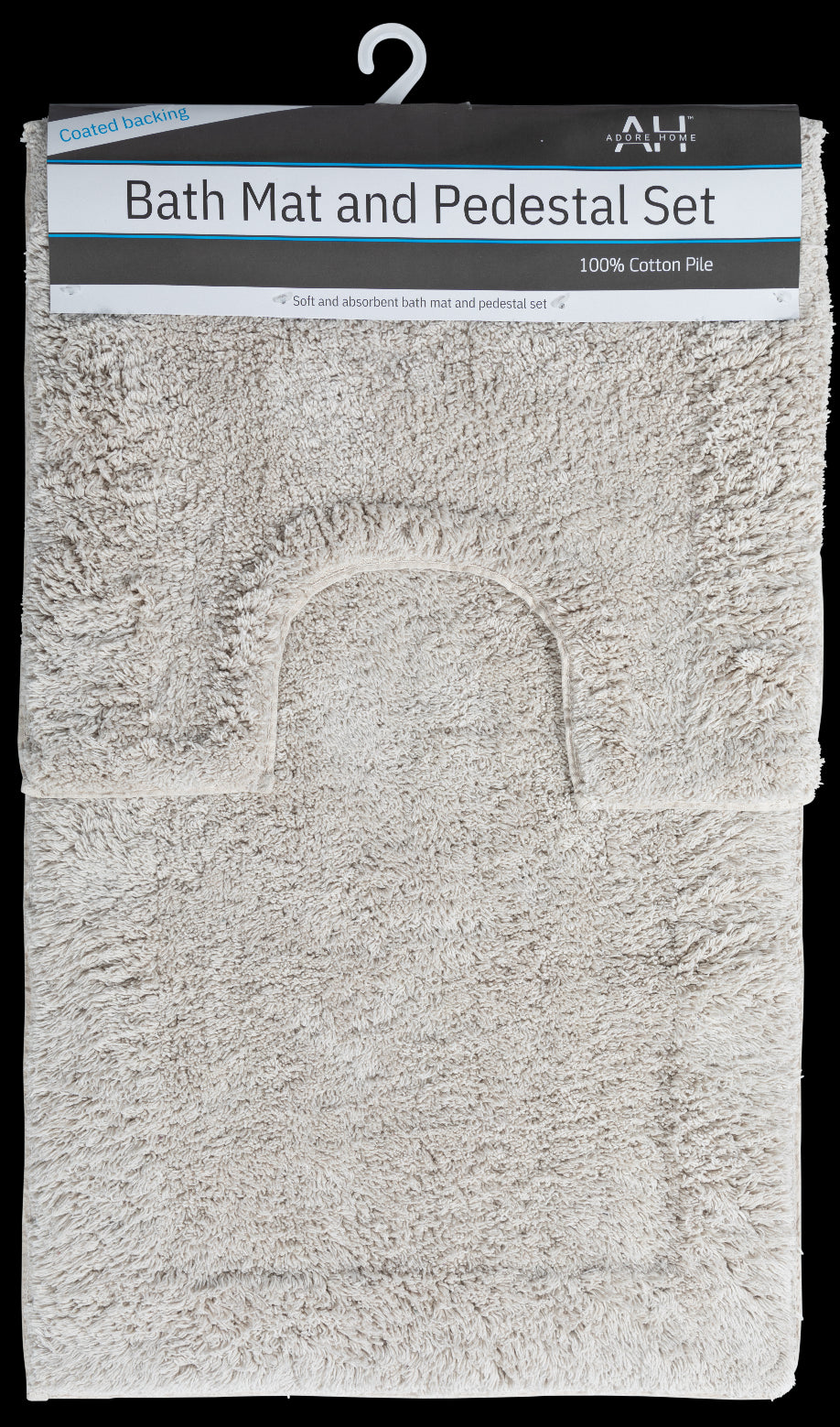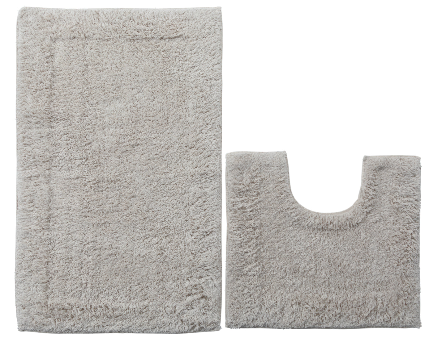 2 piece Bath Mat and Pedestal Set with Non Slip Back 100% Cotton Pile, Stone