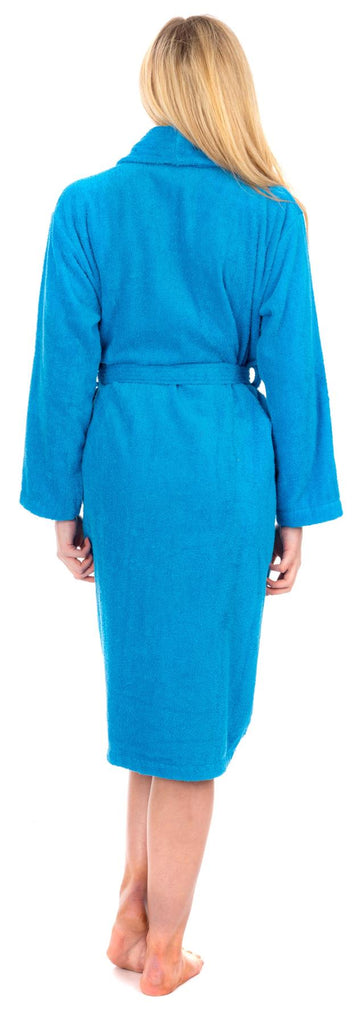 Ladies Aqua Cotton Towelling Shawl Collar Bathrobe
