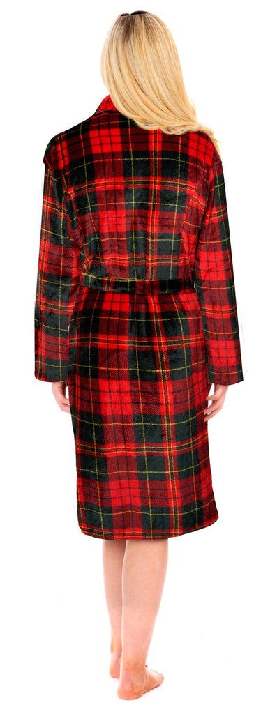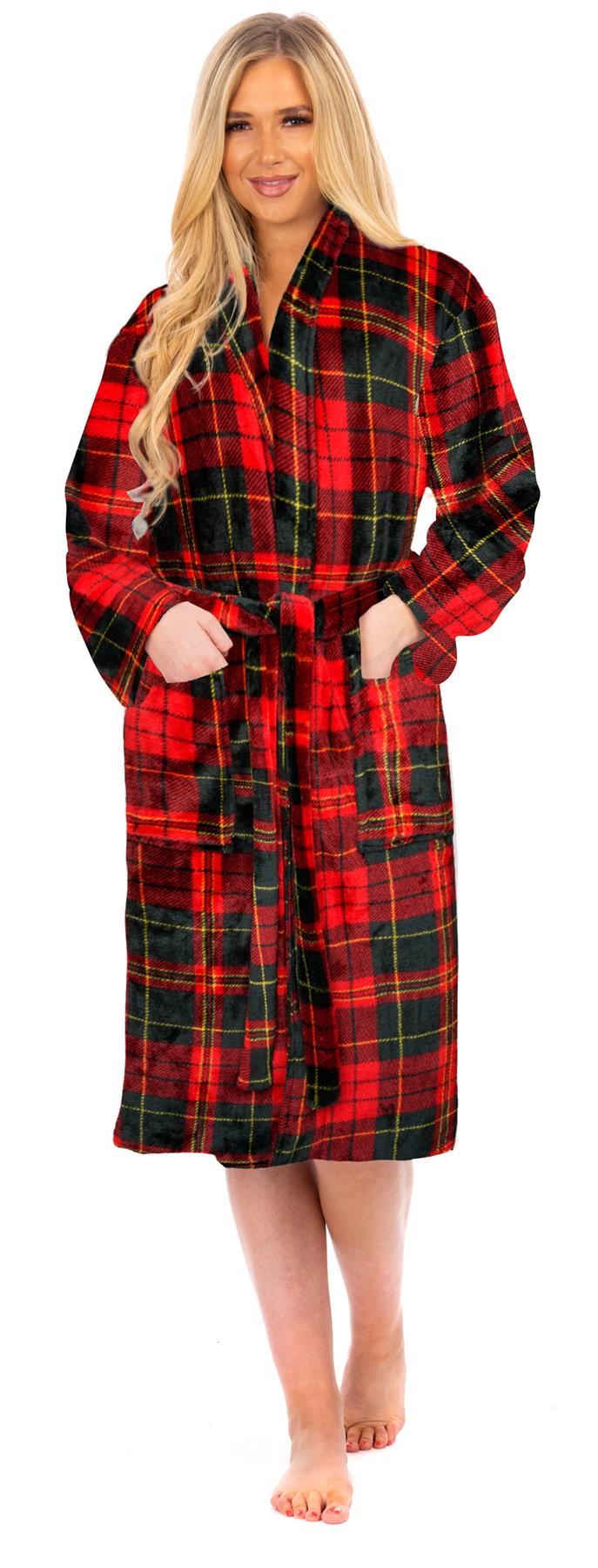 Ladies Red Checked Flannel Fleece Bathrobe