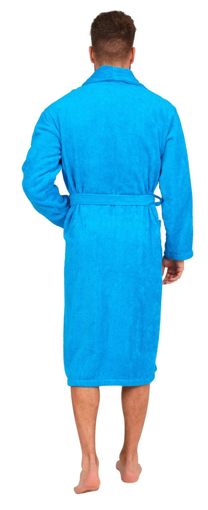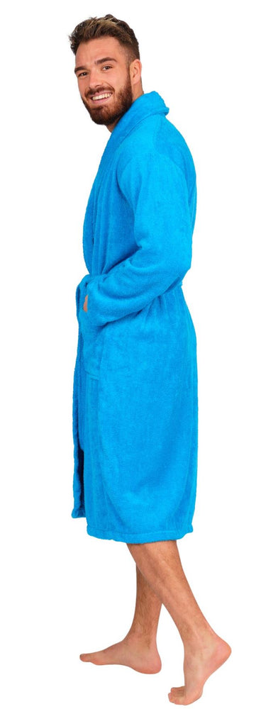 Mens Aqua Cotton Towelling Shawl Collar Bathrobe