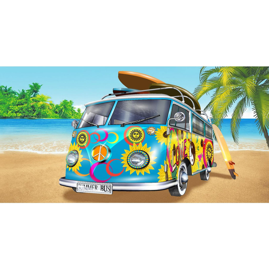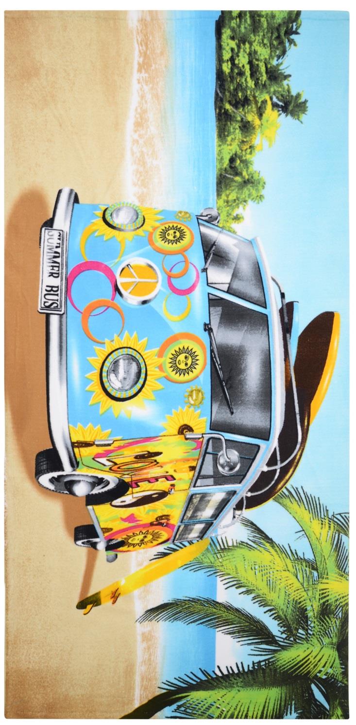 Microfibre Beach Towel, 70x140cm, Summer Bus Blue