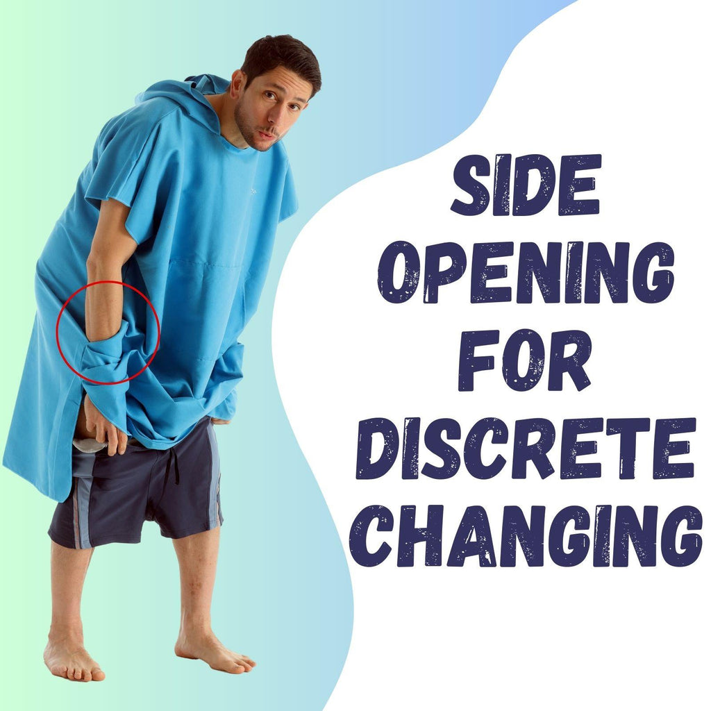 Adore Changing Robes are like a mobile changing. They are ideal for taking to the beach or going swimming. You can maintain your modesty and dry yourself off at the same time. The lightweight suede microfibre material compistion is super absorbent, and it makes an ideal beach companion as you can fold in to a small bag. The hidden side openings allow you to change discretly, while the robe is oversized allowing for plently of room.
