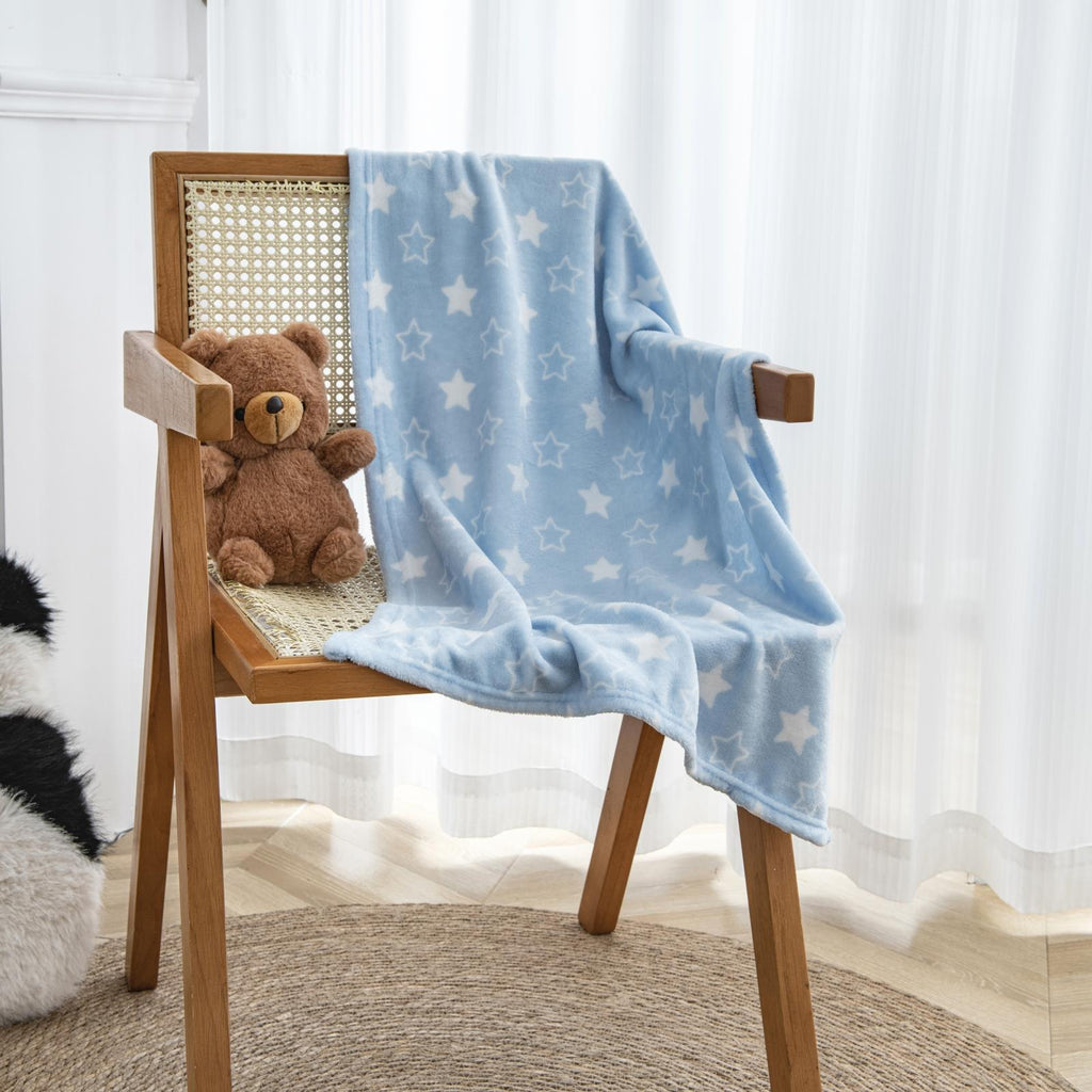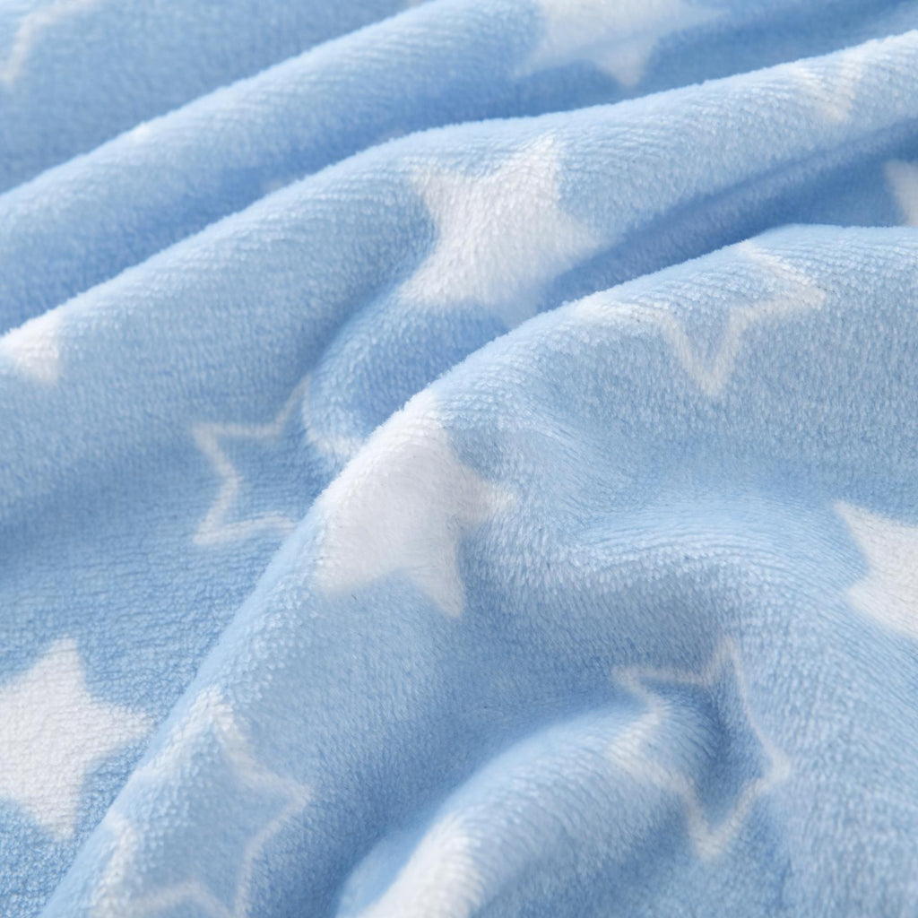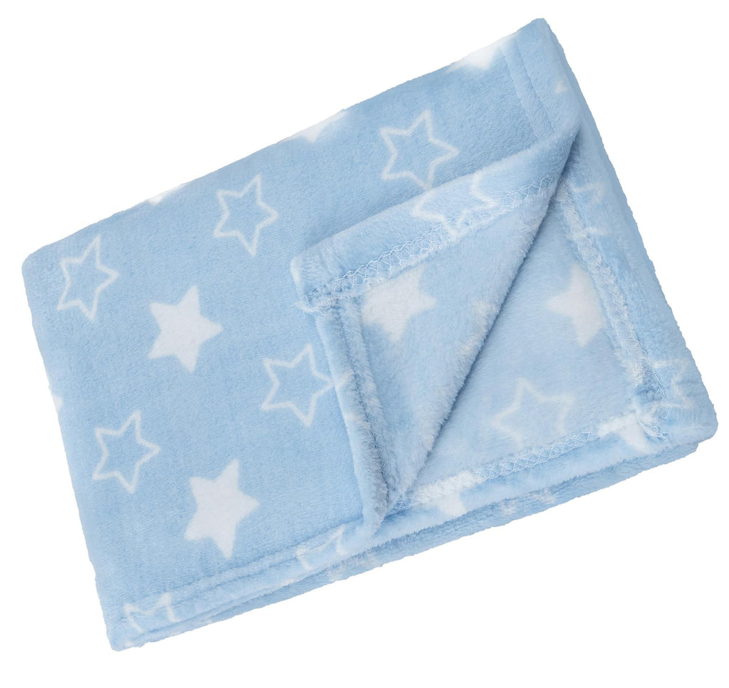 Soft Flannel Fleece Baby Blanket, Blue Printed Stars, 60x90cm