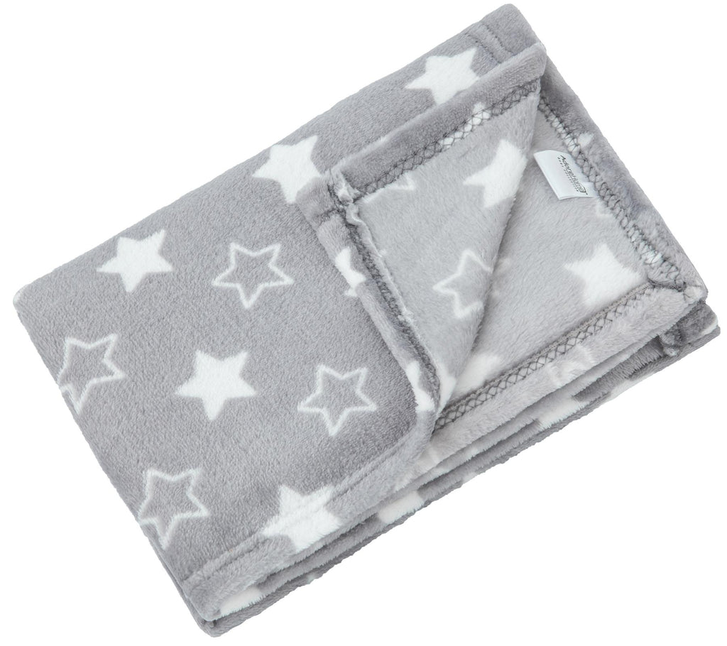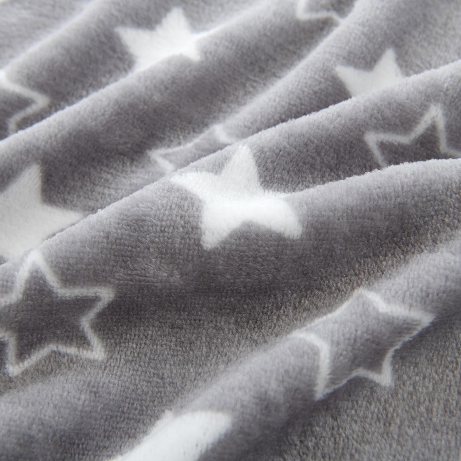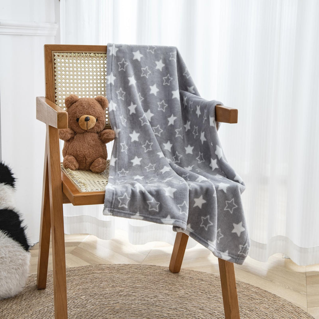 Soft Flannel Fleece Baby Blanket, Grey Printed Stars, 60x90cm