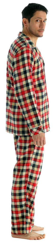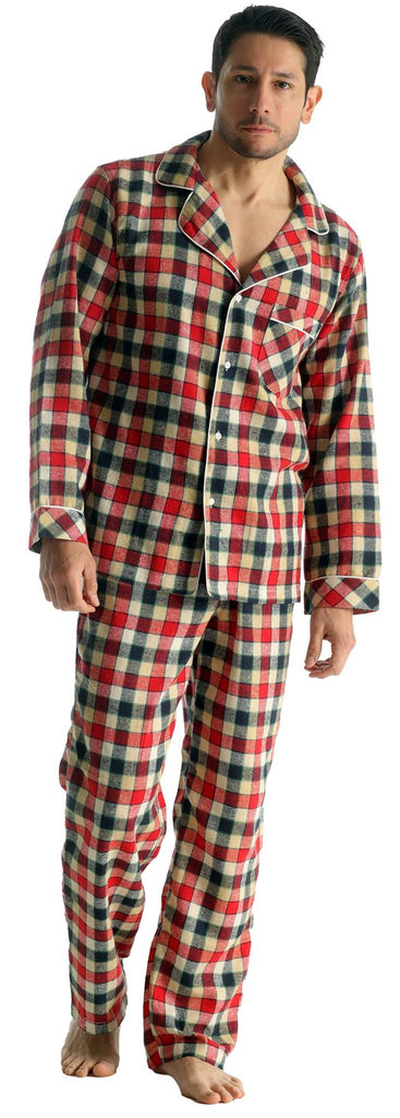 Traditional Men's Red Checked Pyjama Set Brushed for Warmth and Comfort Designed in Italy Style ZA04