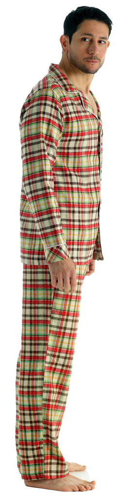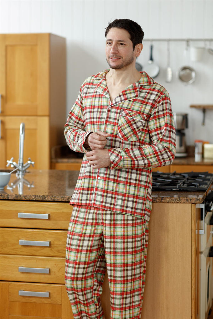 Traditional Men's Red & Yellow Checked Pyjama Set Brushed for Warmth and Comfort Designed in Italy Style ZA02