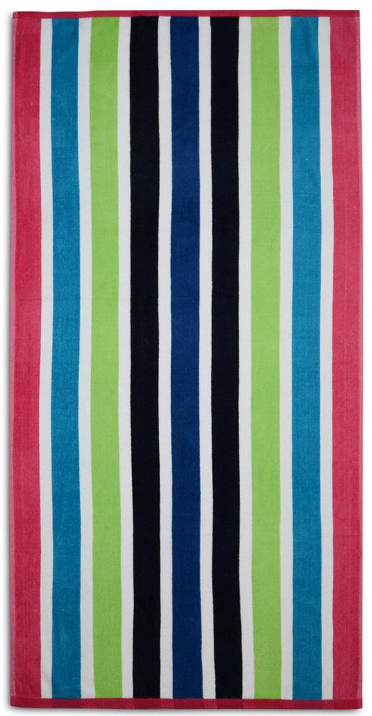 Lay back on the golden sands with our velour beach towel! A luxurious blend of cotton ensuring ultimate softness and absorbency. Available in an array of vibrant colours, both in classic stripes and playful prints, it's a versatile companion for indoor and outdoor relaxation. Perfect for beach days, poolside lounging, or unwinding at the spa, this versatile towel is your go-to companion for ultimate comfort and relaxation under the sun-kissed sky.