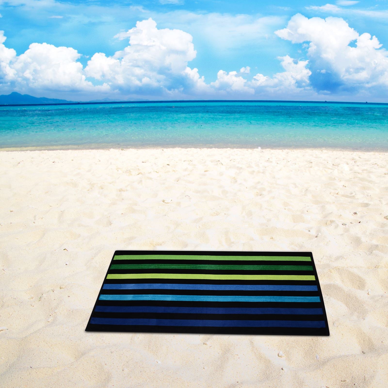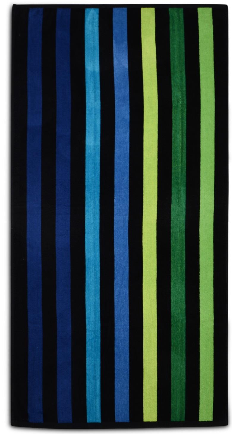 Velour Striped Beach Towel, 75x150cm, Blue, Green & Black Stripe