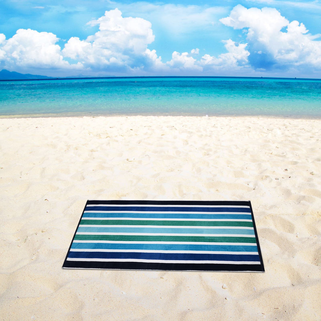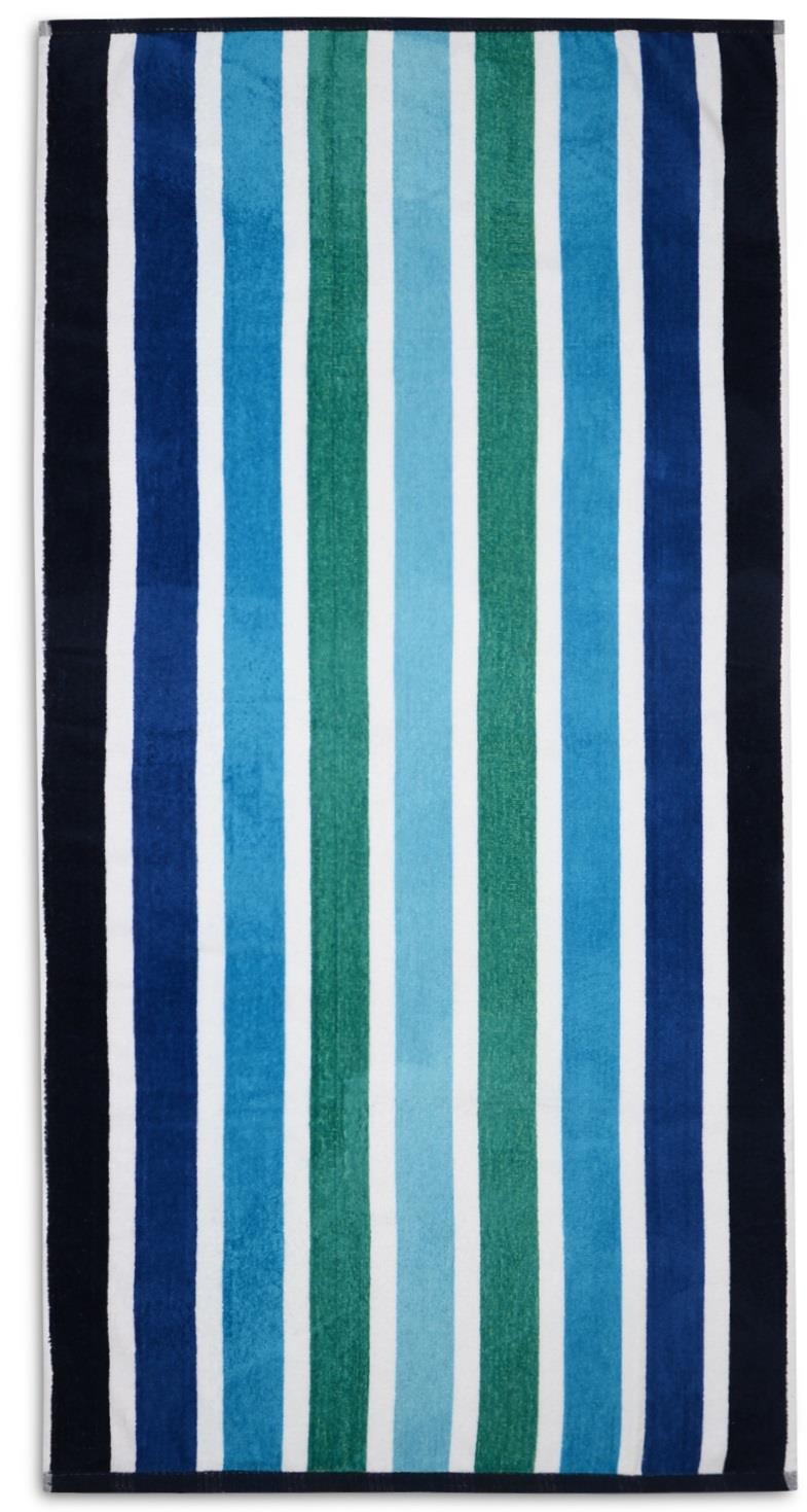 Velour Striped Beach Towel, 75x150cm, Blue, Green & White Stripe