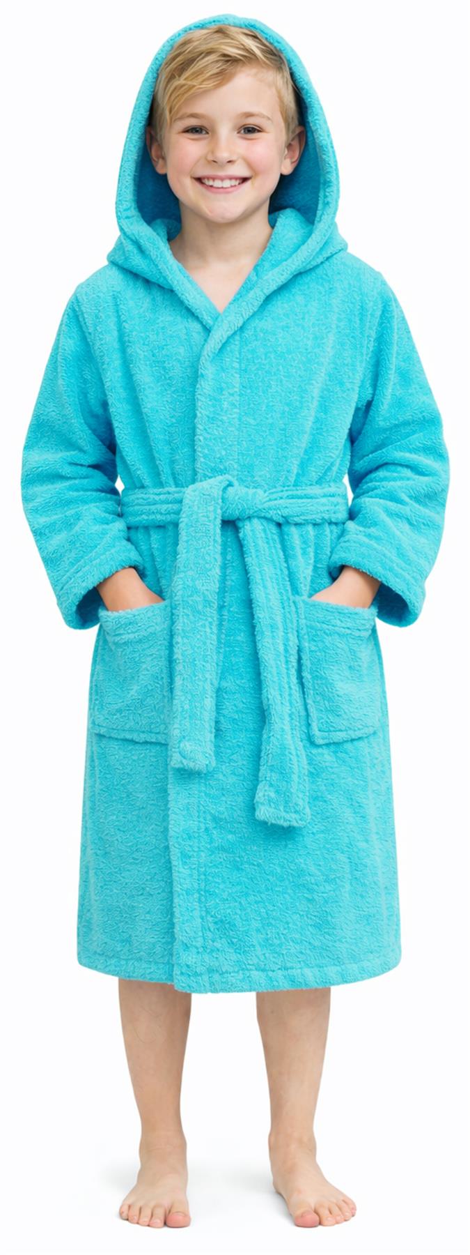 - Boys & girls 100% cotton hooded bathrobe.