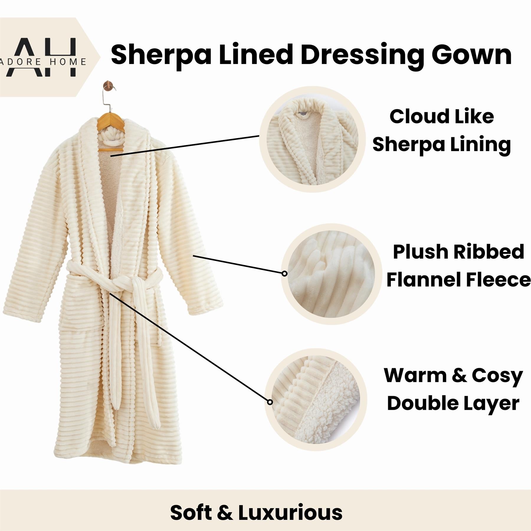 Ladies Ribbed Dressing Gown With Sherpa Lining, Cream